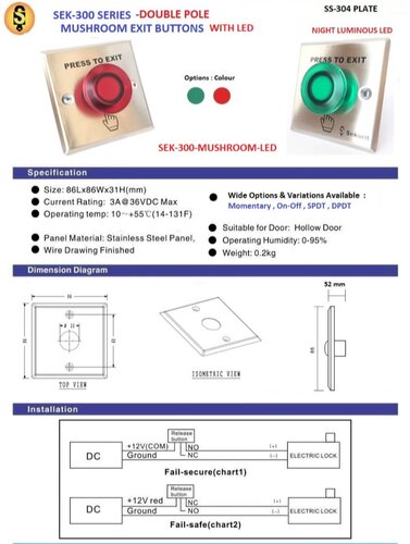| Features | MUSHROOM EXIT BUTTON WITH LED INDICATOR |