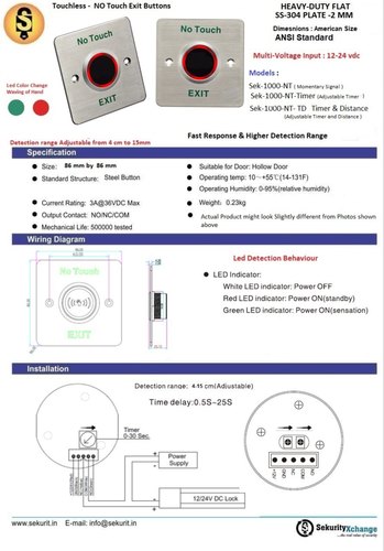 TOUCHLESS EXIT BUTTONS - CONTACTLESS EXIT OR NO -TOUCH EXIT BUTTONS ARE BECOMING VERY POPULAR DUE TO HYGIENIC CONSIDERATIONS , EASE OF USE AND PREVENTION OF GERMS SPREAD. SEKURITYXCHANGE IS ONE OF LARGEST MANUFACTURER OF NO-TOUCH EXIT BUTTONS IN THE WORLD AND BASED IN INDIA. WE HAVE DEVELOPED MULTIPLE MODELS WITH DIFFERENT SHAPES AND FUNCTIONS. WE PROVIDE VERY COMPETITVE RATES AND BEST SALES- SERVICES DUE TO ALL MANUFACTURED IN INDIA